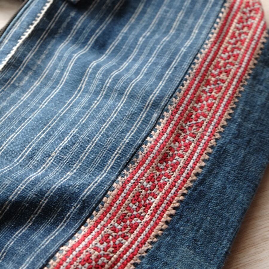 モン族のろうけつ染めと刺繍の組み合わせのトートバッグ。