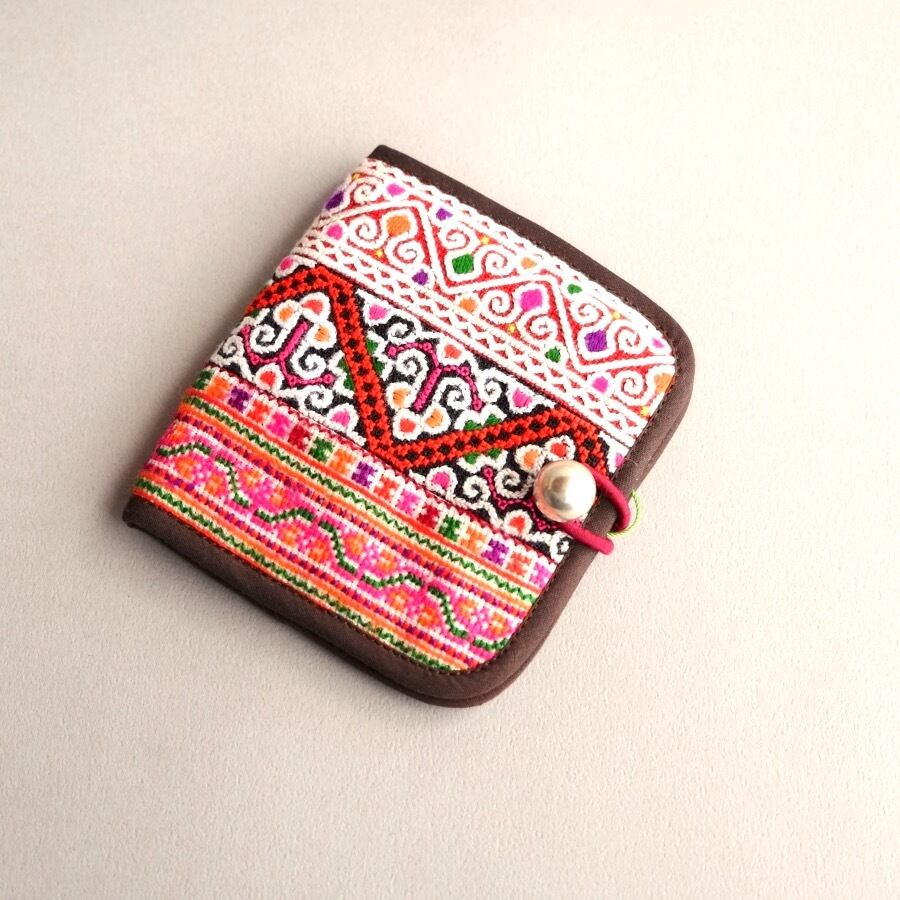白モン族の刺繍の雰囲気にも見えながら、中央の赤い刺繍がアクセントになっており、
