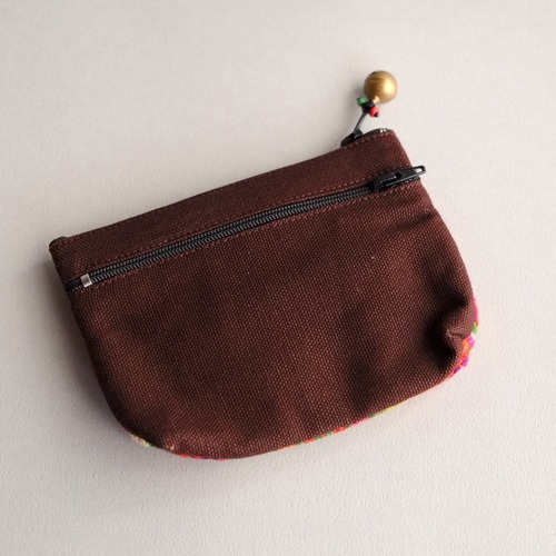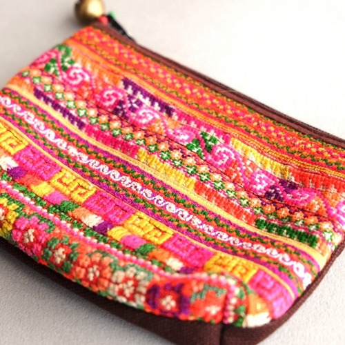モン族のカラフルな刺繍が施された古布を使用して作られたポーチ。
